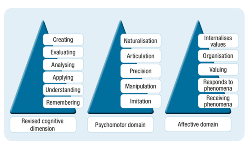 Figure 1: Three domains of Bloom’s Taxonomy (adapted from European handbook on defining, writing, and applying learning outcomes for IVET qualifications)