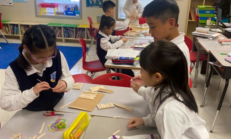 In the Elementary years, this philosophy comes alive through hands-on projects that feel more like discovery than instruction. Students test ideas by building spaghetti structures, explore mechanics through hydraulic models, and bring language learning to life through drama and visual art. Classrooms buzz with conversation and movement. Curiosity leads, and learning follows.
